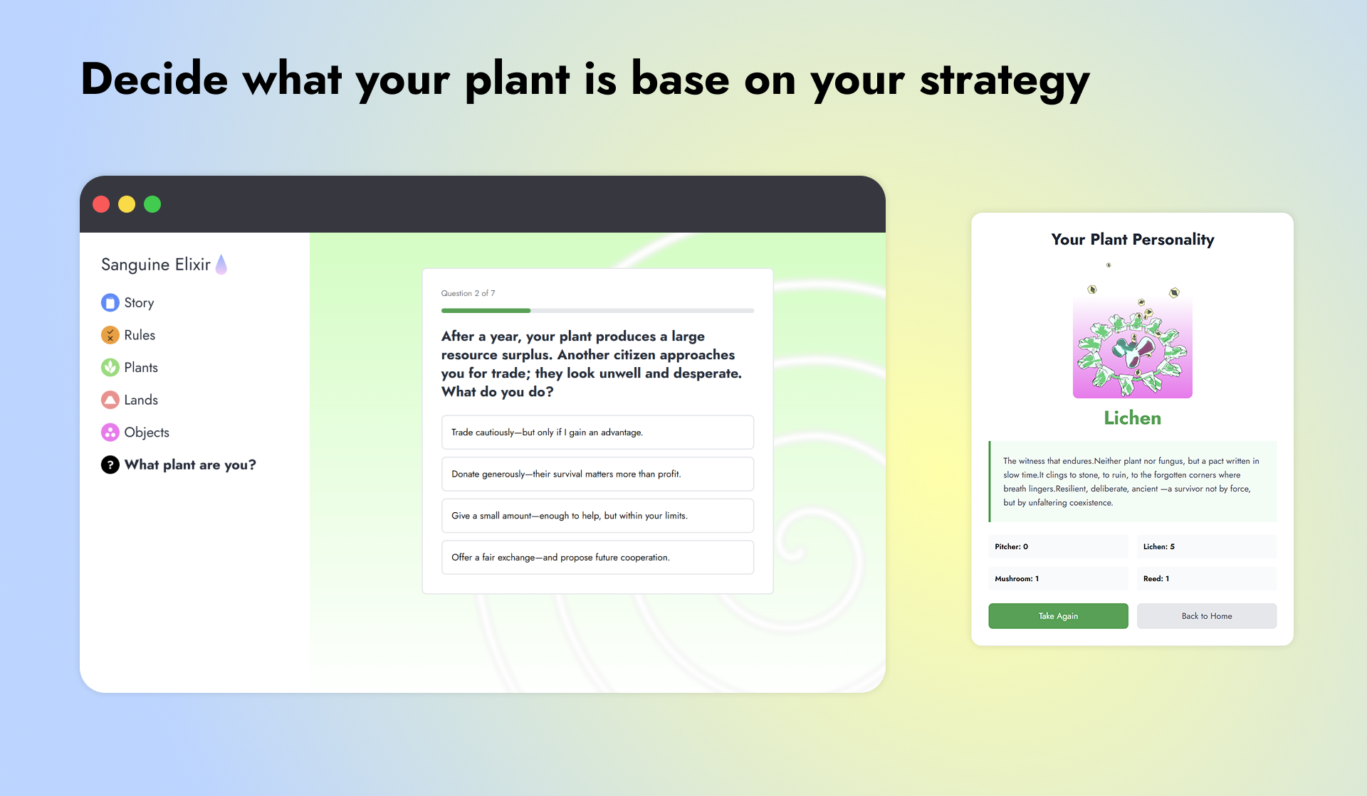 A game that makes you navigate the fragile politics of survival, where every player’s choices ripple through a shared ecosystem.