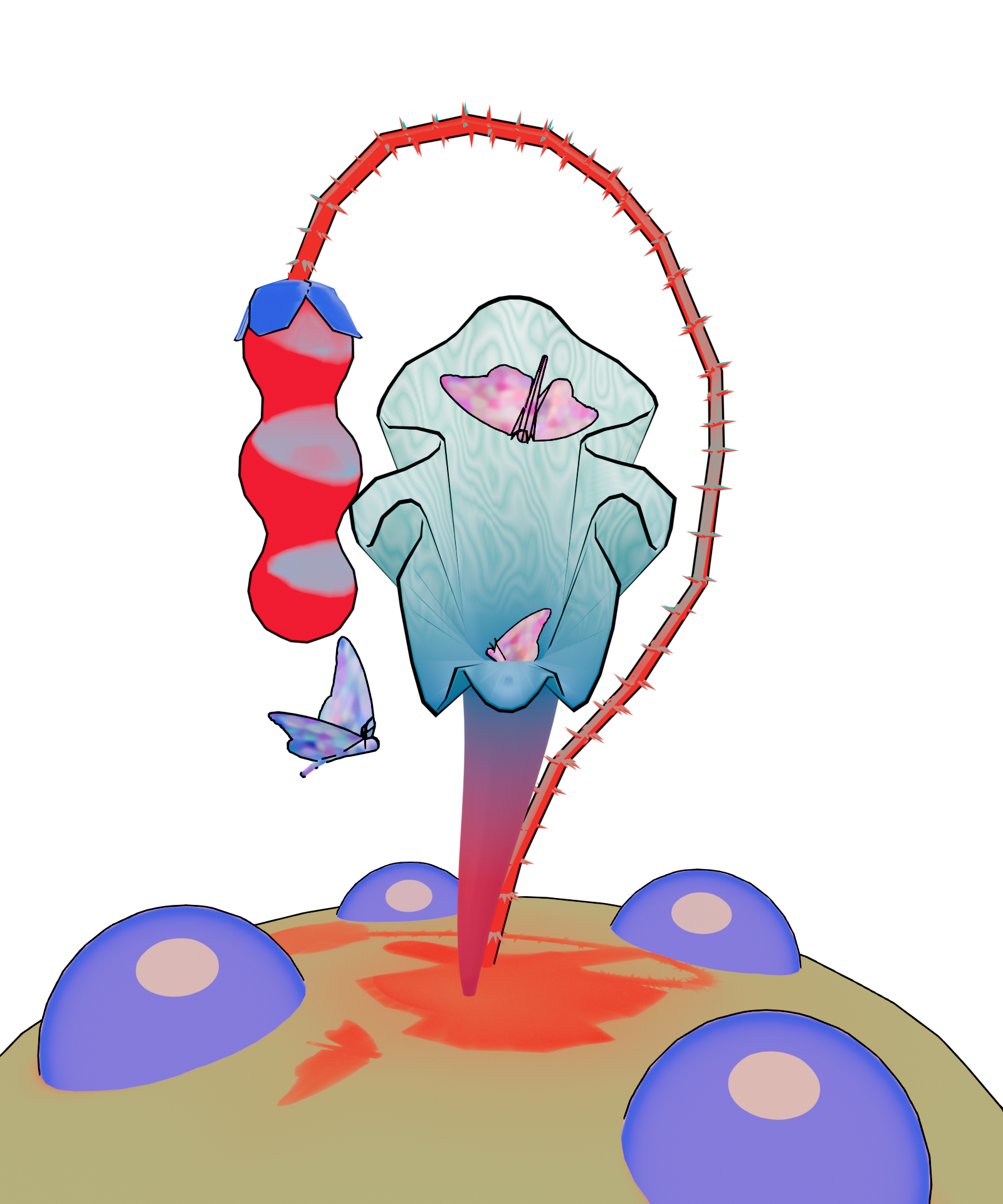 Start from there, I created a parallel world where each human’s life is connected to a plant which produces necessary resources to maintain life. When the plant’s life is in danger, the person would be socially regulated to have less survive resources, and when the plant dies, the person’s life would be terminated too.